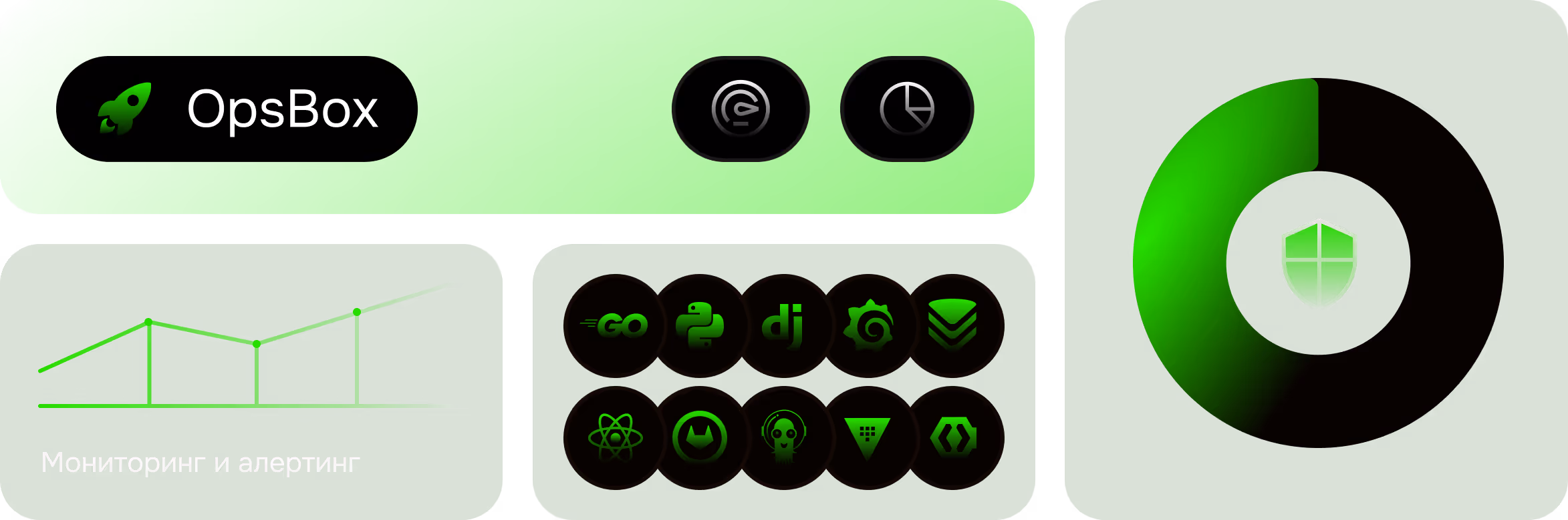 OpsBox построен на микросервисной архитектуре поверх оркестратора Kubernetes и интегрируется с облачными платформами (Yandex Cloud, Selectel и др.) или внутренней инфраструктурой.